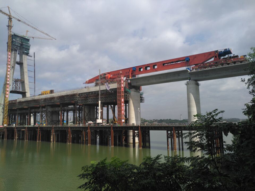中鐵二十一局路橋公司贛縣梁場負責昌贛客專12標段,線路全長45公里,需穿越26座隧道,共有531孔箱梁的制運架施工任務(wù),針對管段橋隧相連的施工難題,中鐵二十一局采用了我公司的穿隧式運架一體機架設(shè)橋梁,大大節(jié)約了作業(yè)時間和人工成本。